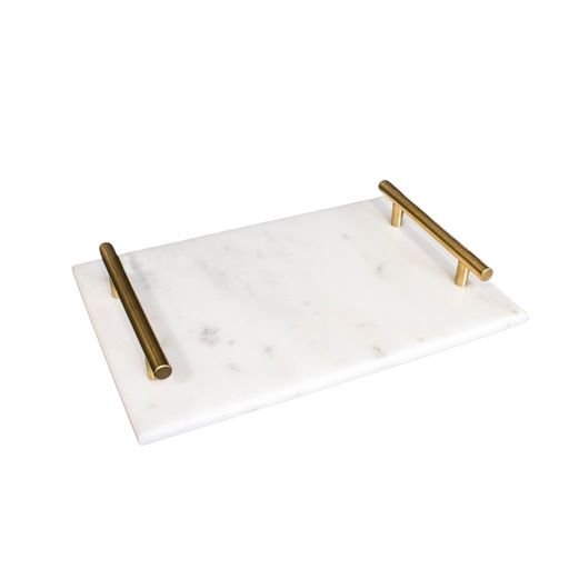 MARBLE TRAY WITH METAL HANDLE 30X20X5CM